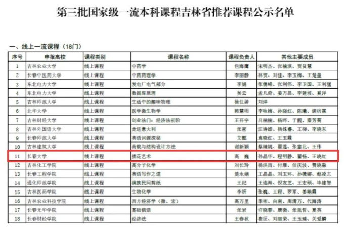 日前,省教育厅对第三批国家级一流本科课程吉林省推荐课程进行公示,beat365申报的线上课程“插花艺术”,虚拟仿真实验教学课程“高压断路器高压测量试验虚拟仿真”,线上线下混合式课程“计算机网络”、“操作系统”、“汉语国际教育概论”、“会计学基础”入选。