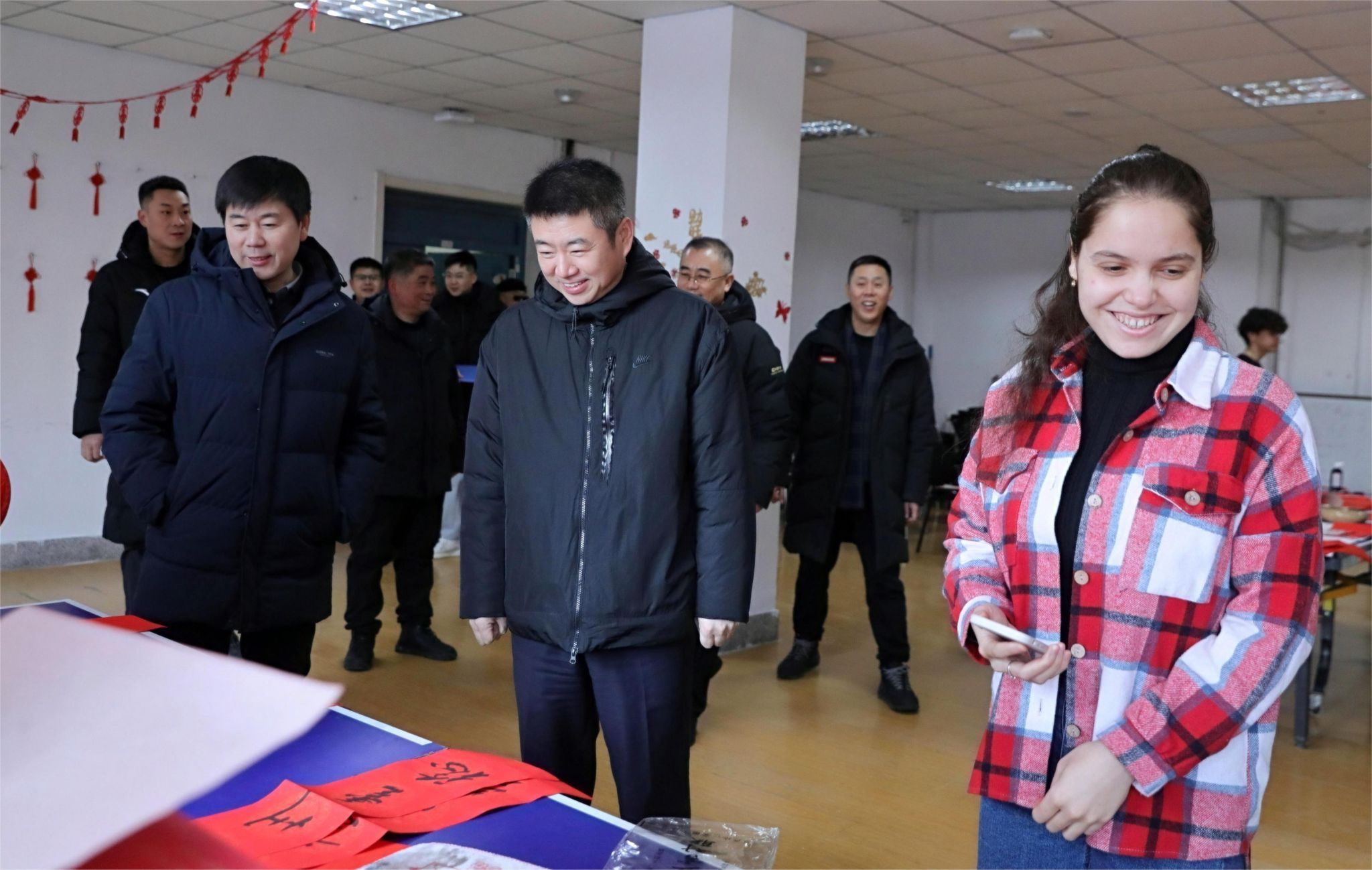 2月9日,校长韩业、党委副书记王剑飞、副校长王德军,看望慰问了春节期间坚守工作岗位的教职工和在校留学生,并送去新春的祝福。