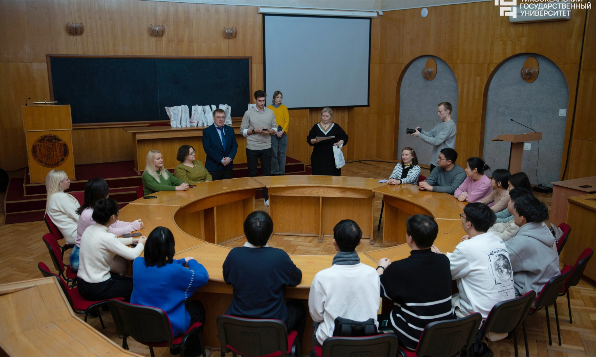太平洋国立大学副校长为每位学生颁发了结业证书,并赠送了精美的礼物,以此表达对学生们未来的美好期许。