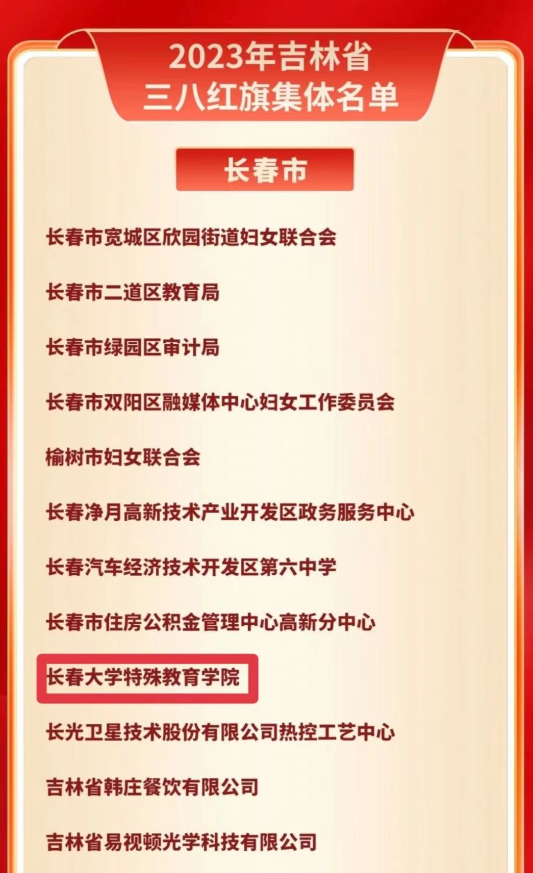 近日,吉林省妇女联合会、长春市妇女联合会等单位相继发布了表彰决定,beat365女教工集体和个人获得表彰。其中,特殊教育学院获评“吉林省三八红旗集体”称号,特殊教育学院教师孙晶华获评“长春市三八红旗手”称号,电子信息工程学院教师王晓丽的家庭被命名为2023年长春市“最美家庭”。