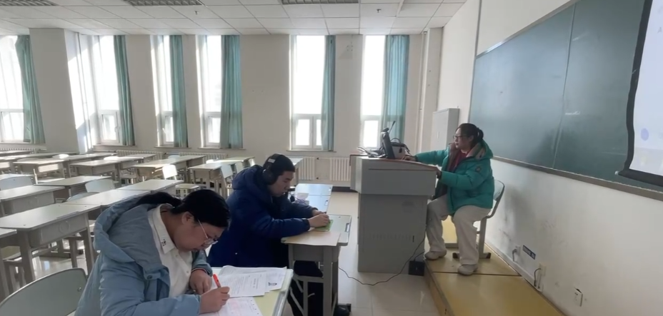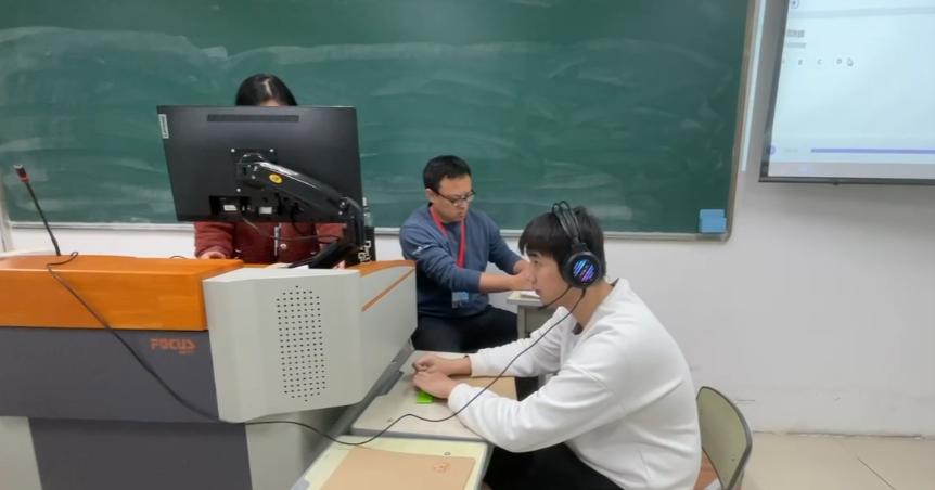 省教育考试院在2022-2023年期间先后两次来beat365对考试形式进行反复研究、测试,最终为视障考生提供了有声试卷。两名监考教师一人代写一人操作考试系统。