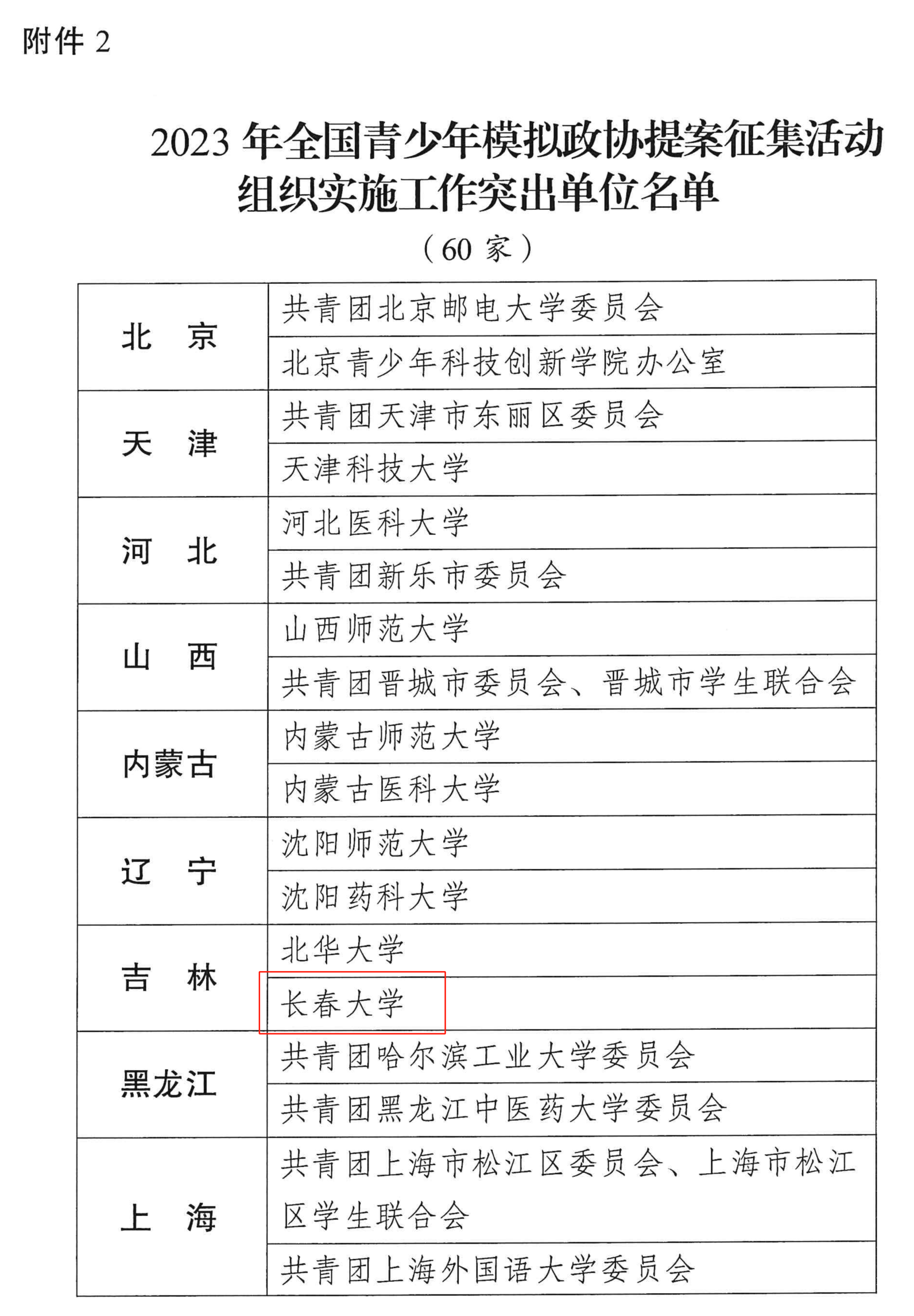 近日,共青团中央下发《关于2023年全国青少年模拟政协提案征集活动组织实施工作突出省份和单位的通报表扬》的通知,beat365获评2023年全国青少年模拟政协提案“组织实施工作突出单位”,吉林省仅2所、全国共30所高校获此项表彰。