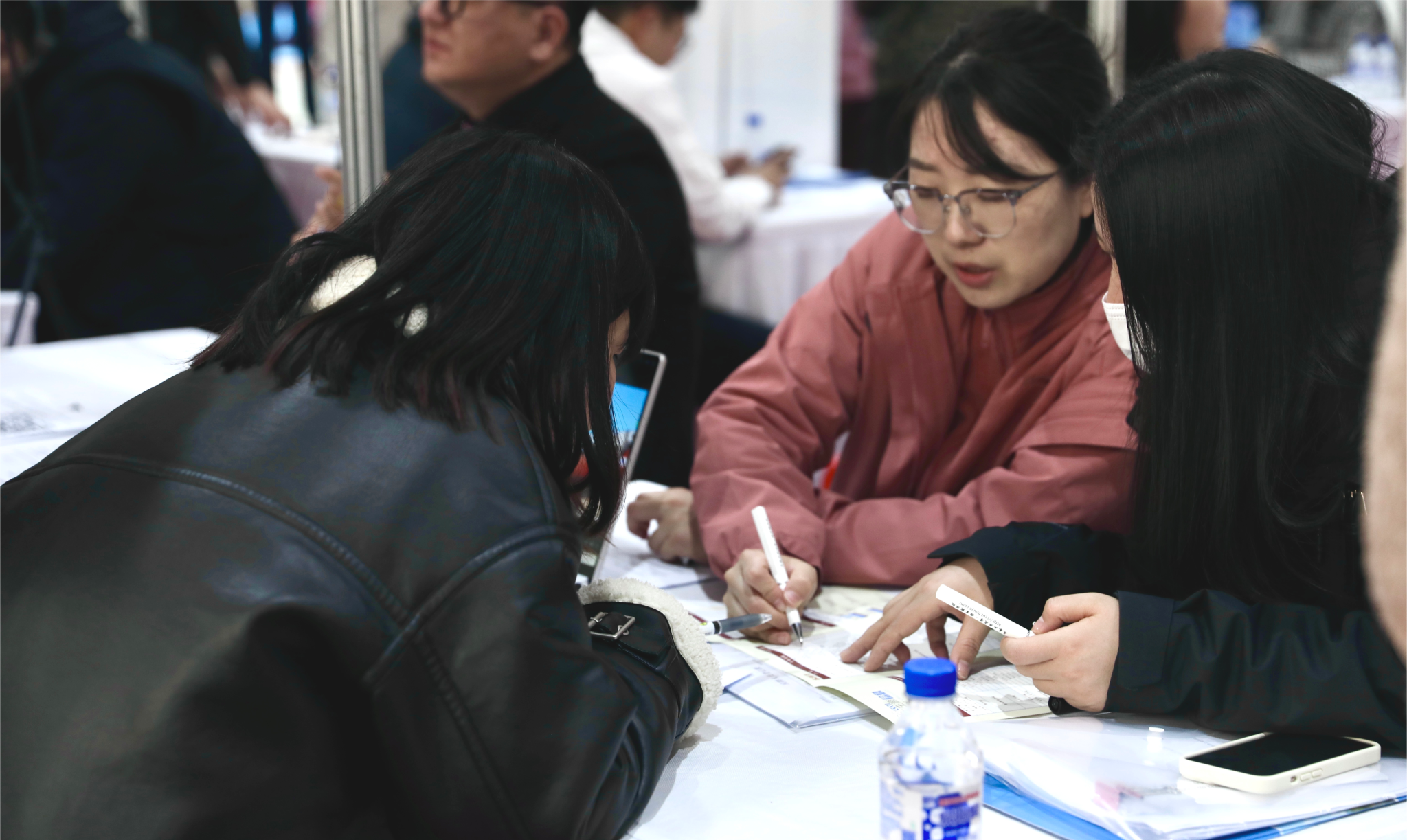 双选会现场,校友与师弟、师妹亲切互动介绍企业发展现状、企业竞争优势和品牌产品、企业未来发展目标、大学生的薪酬待遇和未来发展空间等,与老师在学生实习实践,企业导师聘用,校企产教融合发展等方面进行了深入的交流。