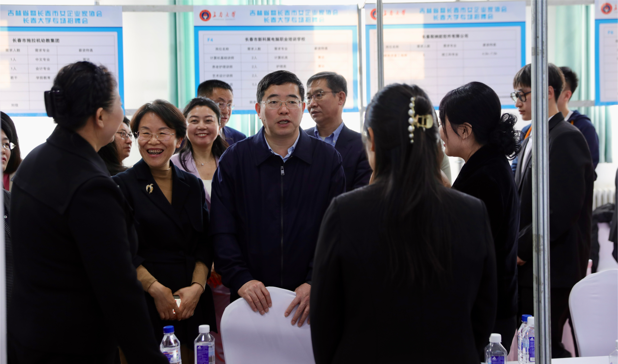 市委副书记马延峰一行到“创业奋斗‘就’在吉林”—“巾帼奋斗在吉林”吉林省女企业家协会beat365官方网站专场招聘会现场,与招聘企业负责人和学生进行了亲切交流,并听取了吉林省女企业家协会会长、长春欧亚集团股份有限公司副董事长、欧亚商业连锁总经理于惠舫对本次活动的介绍。