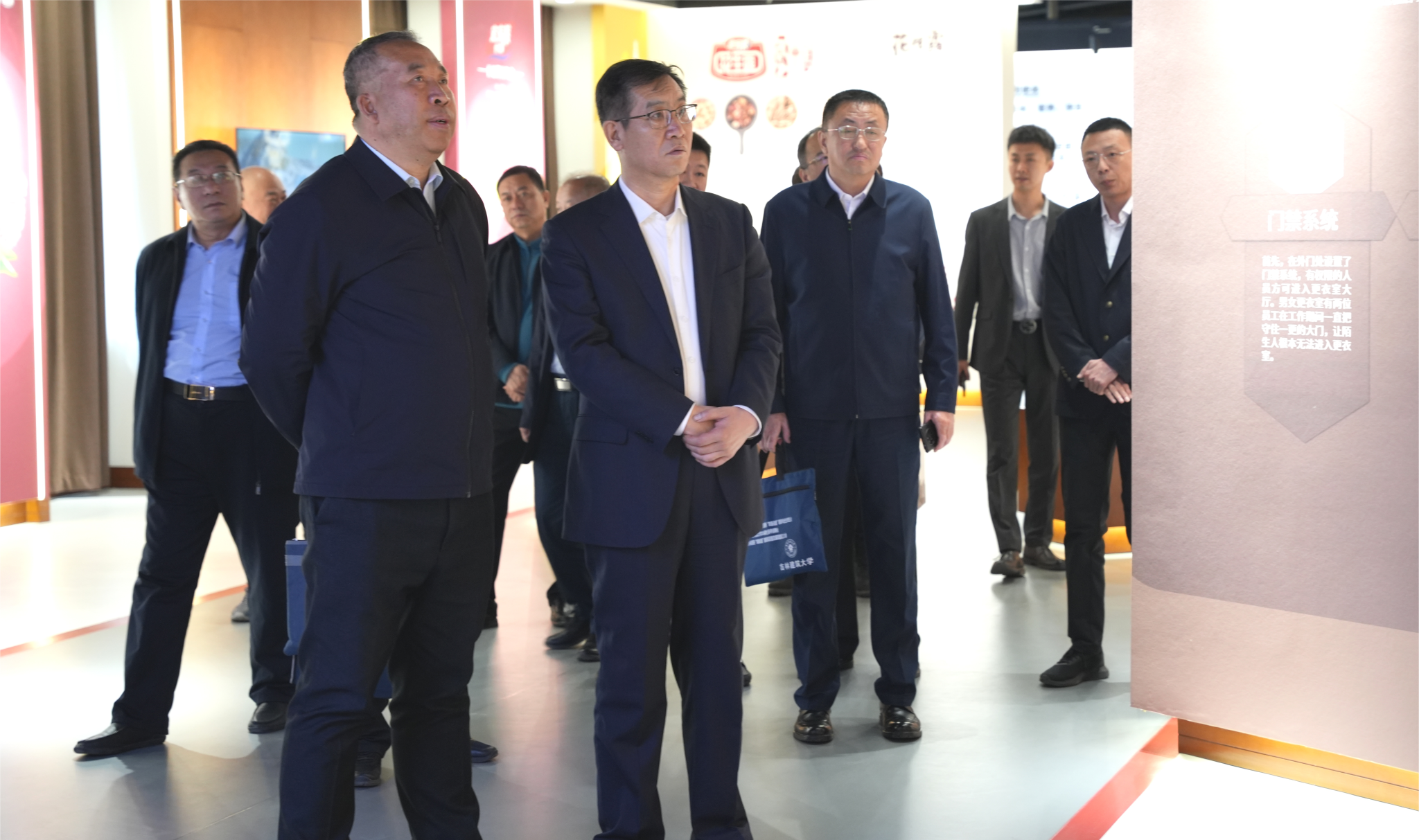 孙爱军一行在公司总经理陈述、副总经理卢建有及部门负责人的陪同下参观了宏宝莱透明工厂和企业文化展览馆,听取了公司文化讲解。