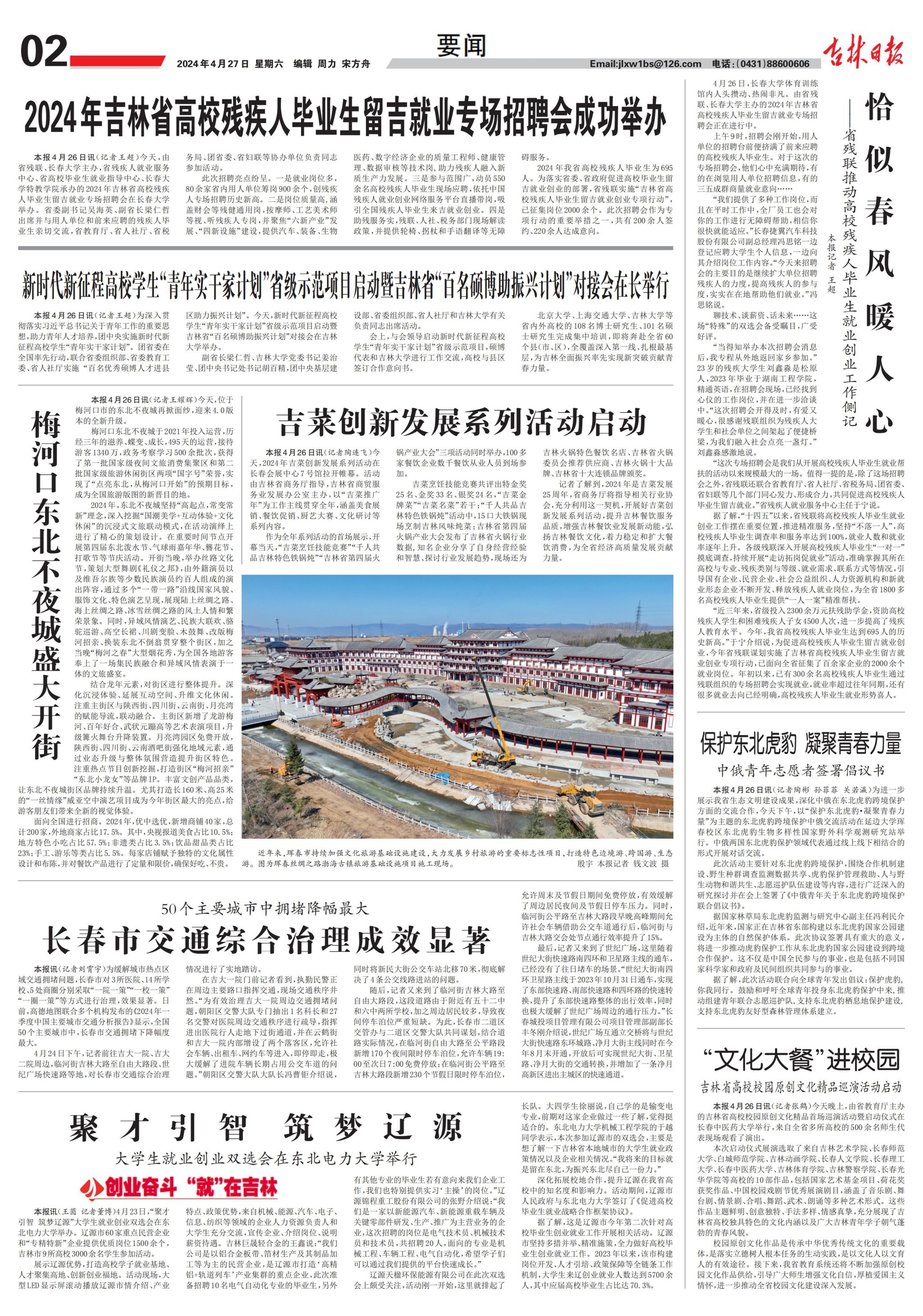 4月26日上午,由省残联与beat365共同主办,省残疾人就业服务中心、省高校毕业生就业指导中心、beat365特殊教育学院共同承办的2024年吉林省高校残疾人毕业生留吉就业专场招聘会在beat365训练馆举行。省委副书记吴海英、副省长梁仁哲出席与用人单位和前来应聘的残疾人毕业生亲切交流,省教育厅、省人社厅、省税务局、团省委、省妇联等单位负责同志参加活动。省内多家媒体对此进行报道。