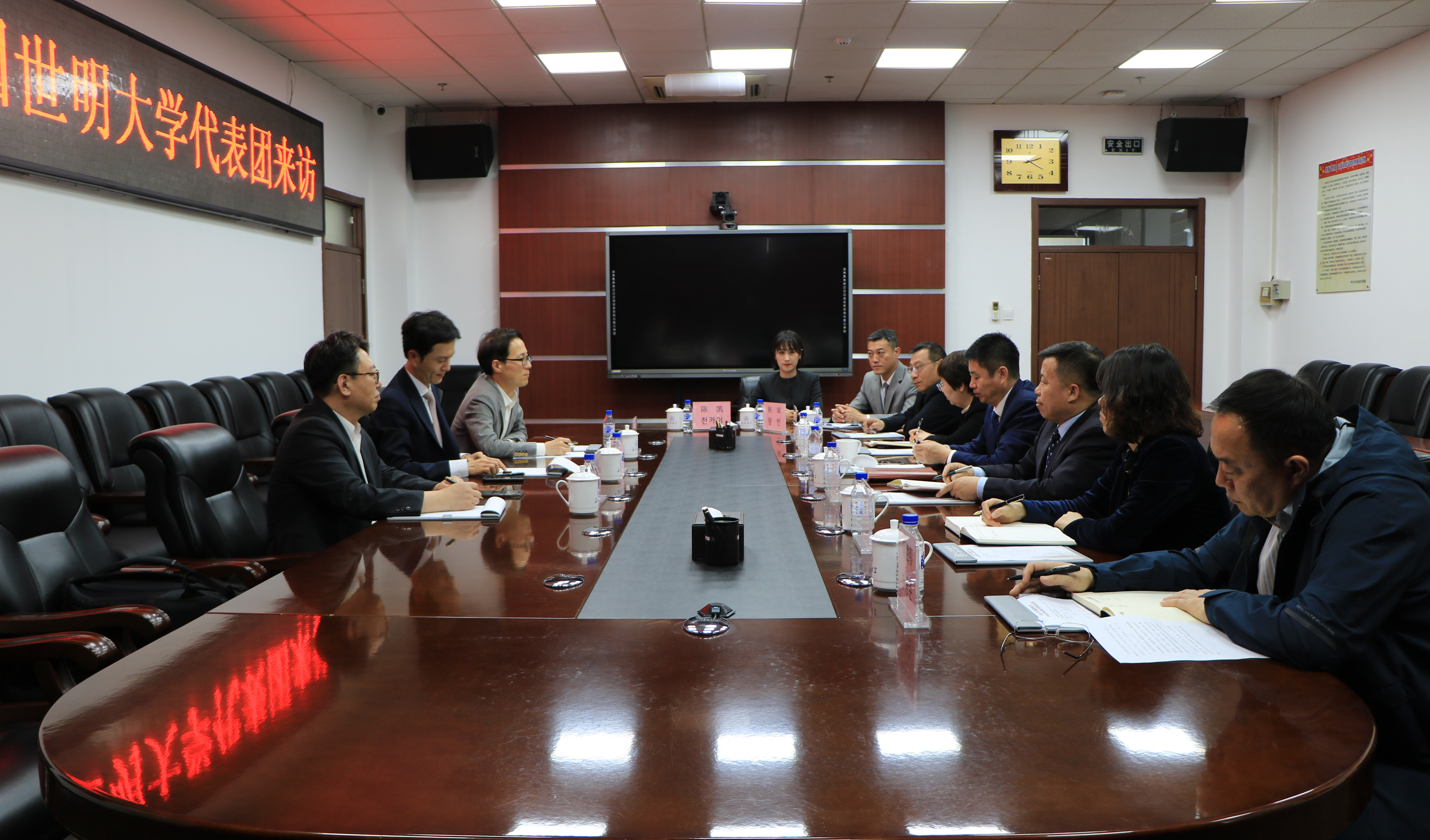 5月13日-14日,韩国世明大学校长权洞铉一行访问beat365,校长韩业、副校长张洪杰会见了代表团。