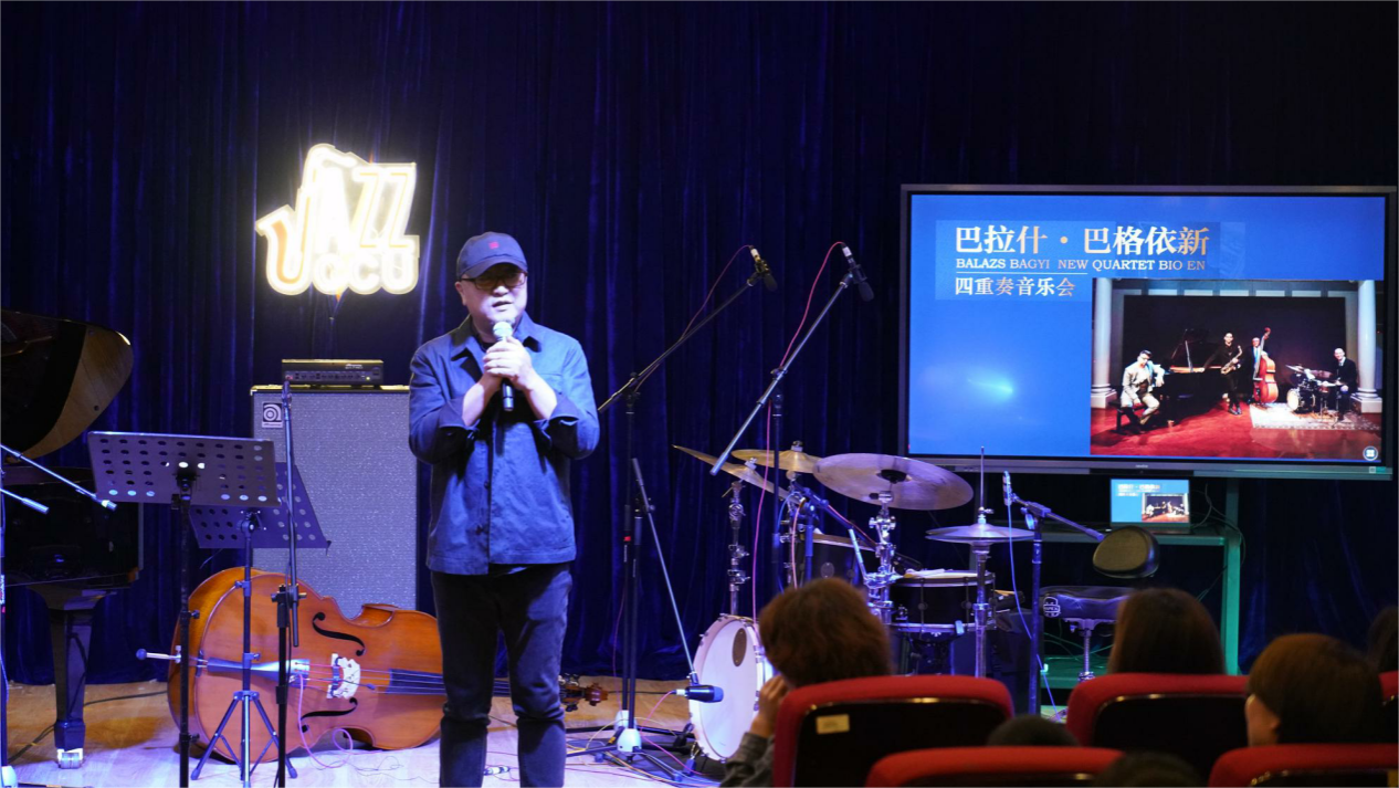 黄勇首先介绍了爵士乐的历史脉络与艺术魅力。“巴拉什·巴格依新四重奏”以独特的音乐语言,演绎了从古典到现代,从匈牙利民谣到世界音乐的多元爵士乐。随后,四位专家与现场同学进行了亲切的交流与互动。