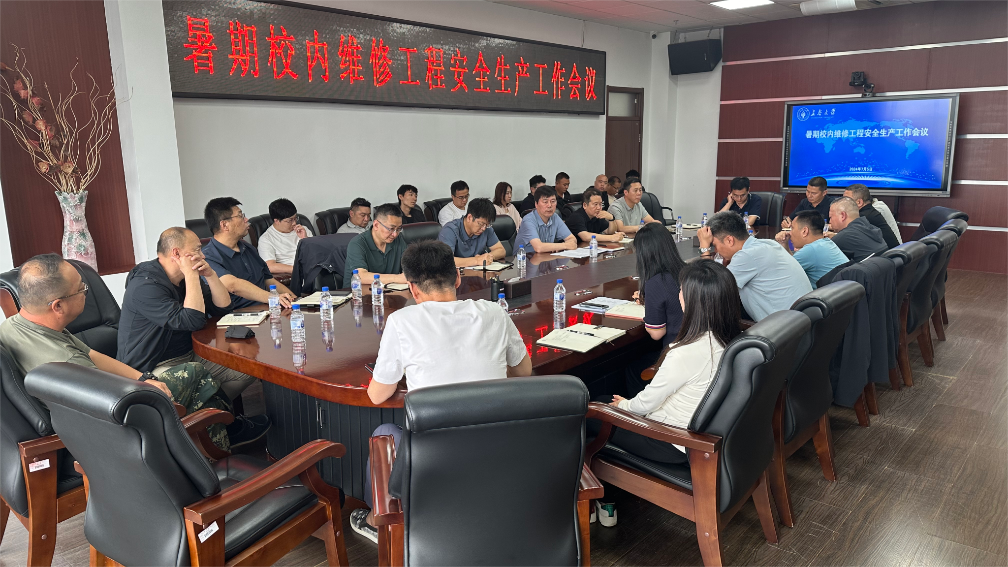 7月5日,学校召开暑假校内维修工程安全生产工作会议。会议由副校长王德军主持。