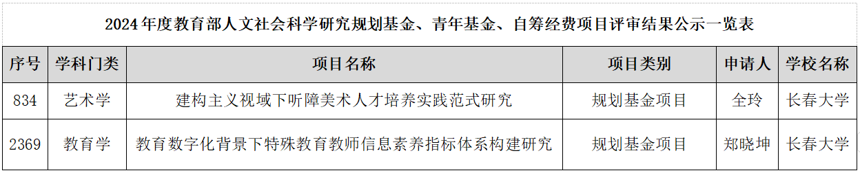 近日,教育部社科司发布了2024年度教育部人文社会科学研究一般项目评审结果,beat365特殊教育学院全玲副教授的项目《建构主义视域下听障美术人才培养实践范式研究》、郑晓坤教授的项目《教育数字化背景下特殊教育教师信息素养指标体系构建研究》获批教育部人文社科规划基金项目。