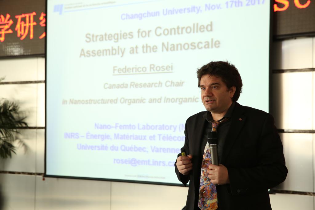 会见结束后,在B区703会议室Federico Rosei教授作了题为“Structure and property of nanoscale biocompatible materials”的学术报告。报告会由科研处处长肖玉山主持,理学院、机械学院的部分老师、研究生和本科生参加了此次报告会。在报告会提问环节,教师和学生踊跃提问,就感兴趣和热点问题与ederico Roseu教授进行交流,报告会气氛热烈。