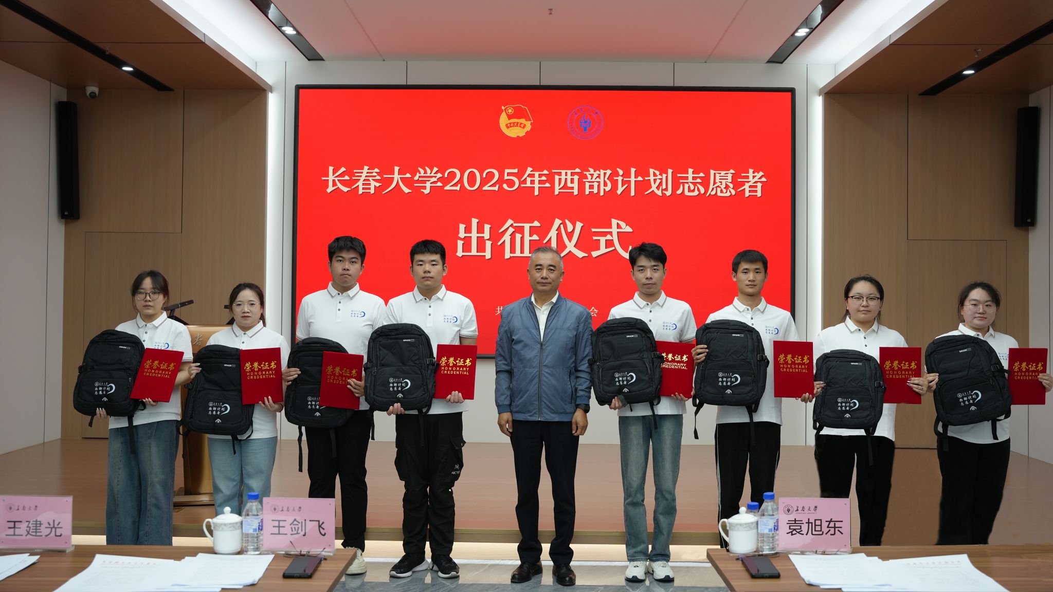 近日,学校举行2025年西部计划志愿者出征仪式。学校党委副书记王剑飞出席仪式,仪式由学校团委副书记丁舒主持。