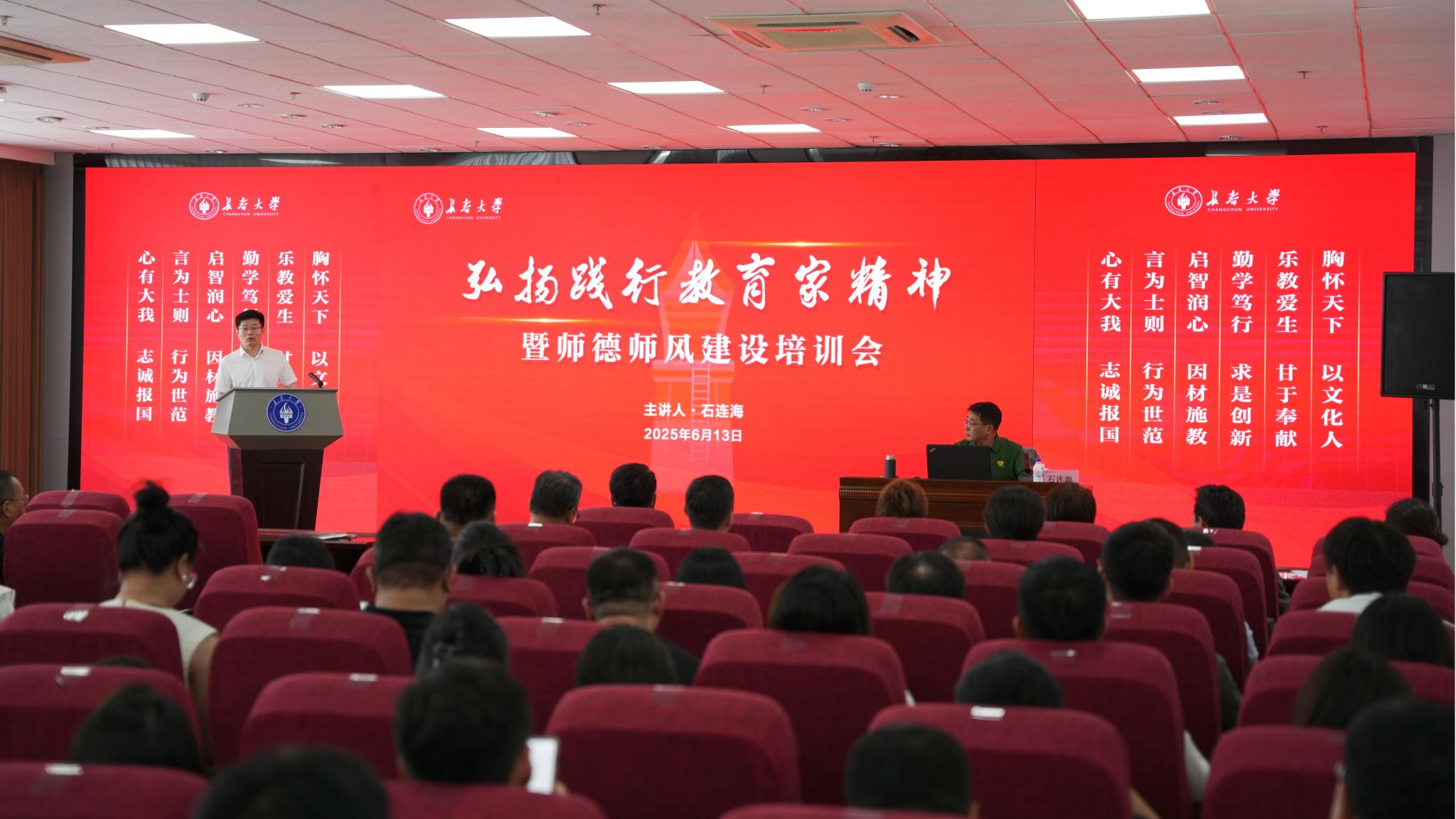 为深入贯彻落实习近平总书记关于教育的重要论述,大力弘扬教育家精神,全面加强师德师风建设,6月13日,学校举办弘扬践行教育家精神暨师德师风建设培训会,邀请国家教育行政学院副研究员、国培项目特聘专家石连海作专题报告。学校党委副书记巩英春出席会议,会议由党委教师工作部部长张洪昭主持。