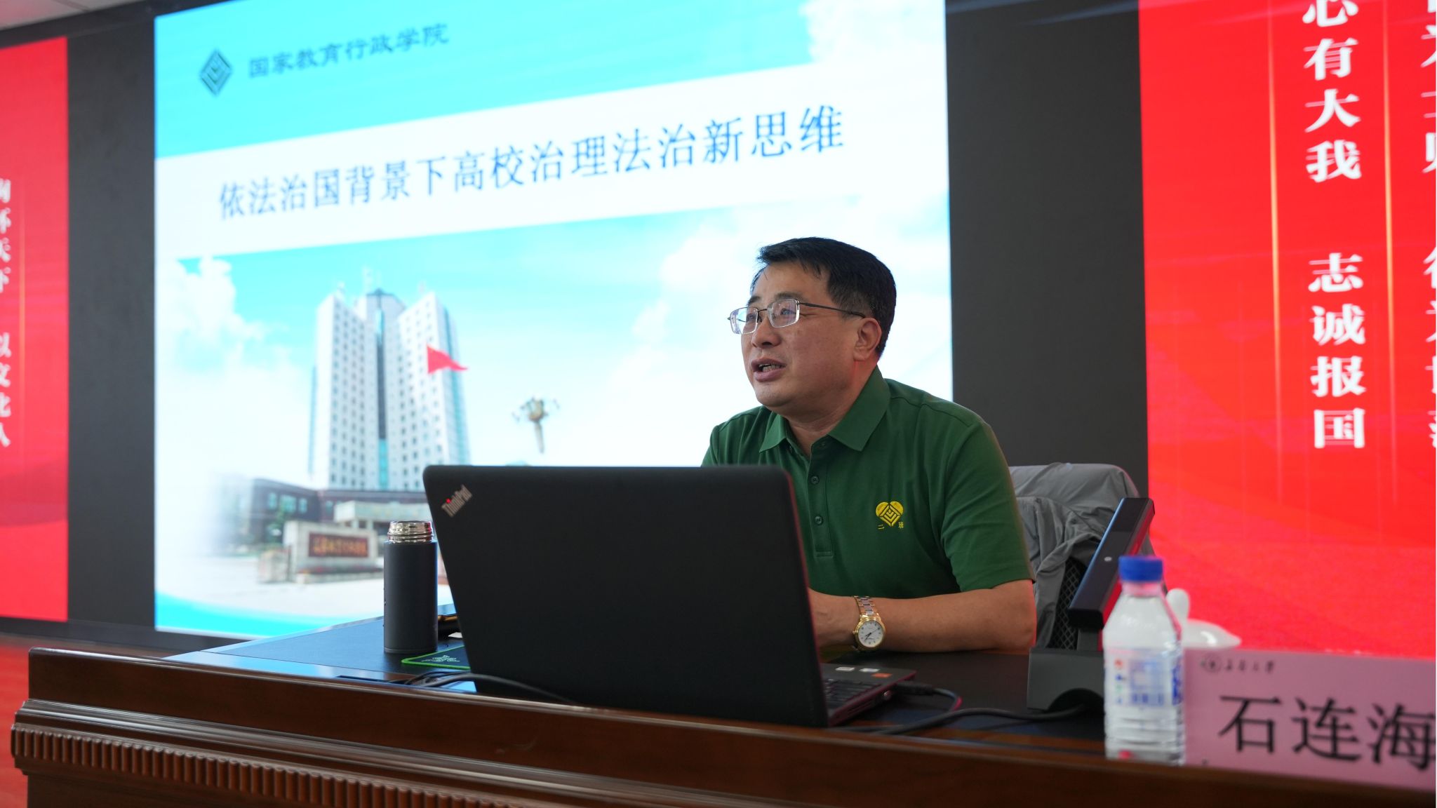 石连海作了题为《依法治国背景下高校治理法治新思维》的专题报告,围绕依法治校和师德师风建设主题,结合丰富案例,展开了深入浅出的讲解。通过剖析教育领域内依法治校的典型案例,阐述了依法依规管理学校事务对保障师生权益、维护校园秩序、推动学校高质量发展的重要作用。