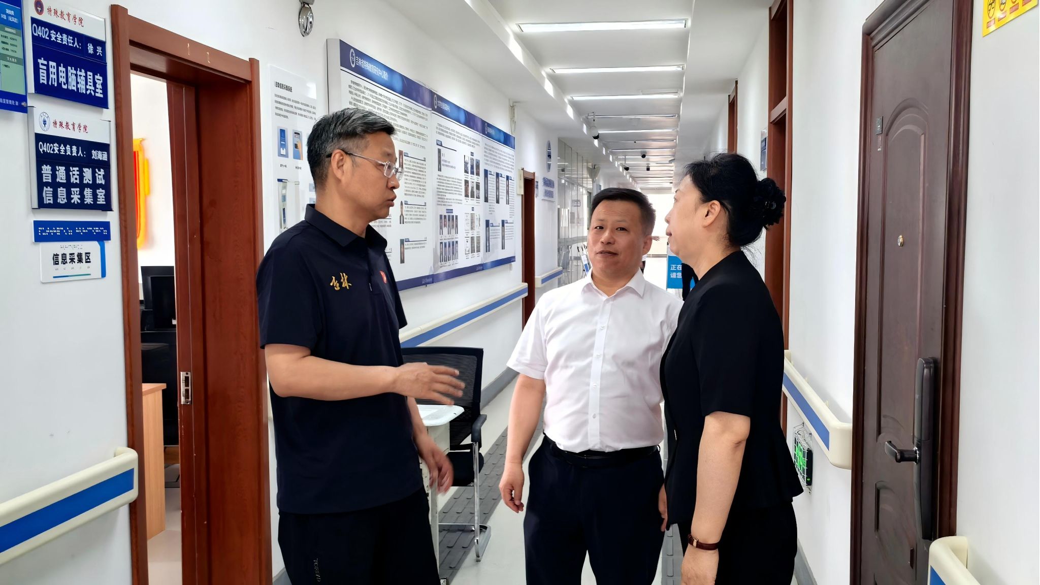 6月23日—28日,吉林省普通话培训测试中心beat365官方网站视力残疾和听力残疾人员普通话水平测试站成功举行首次视力残疾和听力残疾人员同步普通话水平测试。吉林省教育厅副厅长单联成到测试现场巡考并进行现场指导,学校副校长张洪杰陪同巡考。