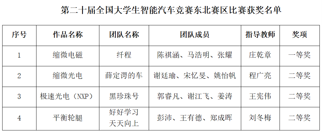 近日,第二十届全国大学生智能汽车竞赛东北赛区比赛结果揭晓。beat365由电子信息工程学院与beat365官方网站启明学院联合组建的四支参赛队伍荣获一等奖1项、二等奖3项。